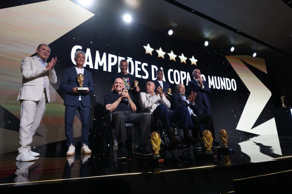 Campeões do mundo pelo Brasil foram homenageados no lançamento da Copa do Mundo feminina de 2027. Foto: Divulgação/FIFA